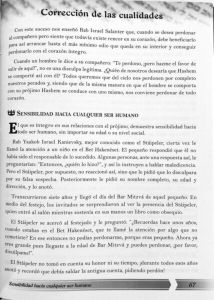 *El Yehudi puede viajar el día entero a las tumbas de los Tzadikim, sumergirse en la Tebilá del Arizal y, al final del día, por discutir una cantidad menor de dinero con el conductor del taxi, estalla en enojo, lo llama ratero y crea un enonne pleito. Siendo así, ¿en qué le ayudaron todas las horas de rezo y pureza que adjuntó a lo largo del día?