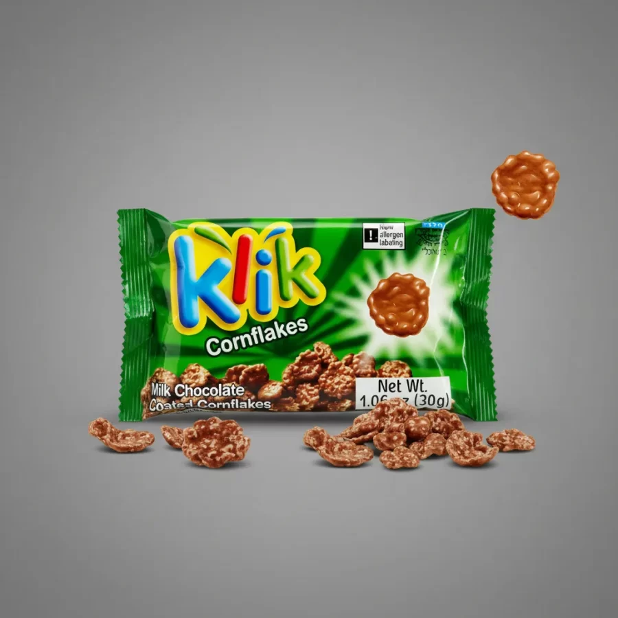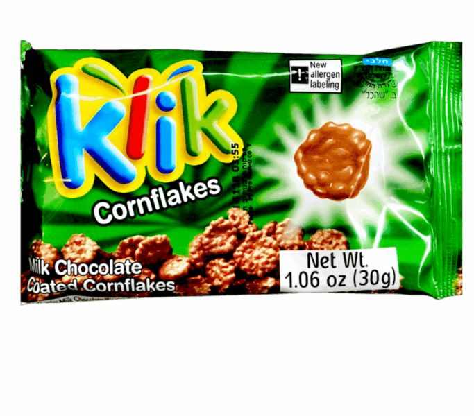 Hojuelas de maÃz cubiertas de chocolate con leche KOSHER.