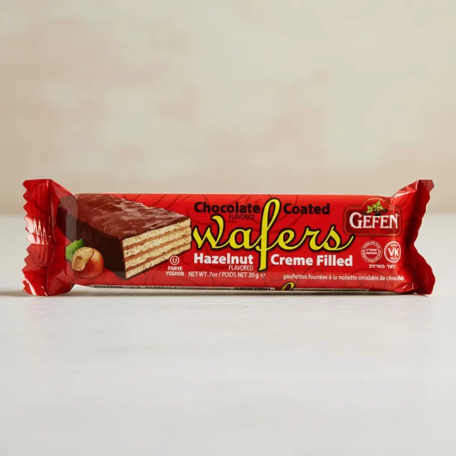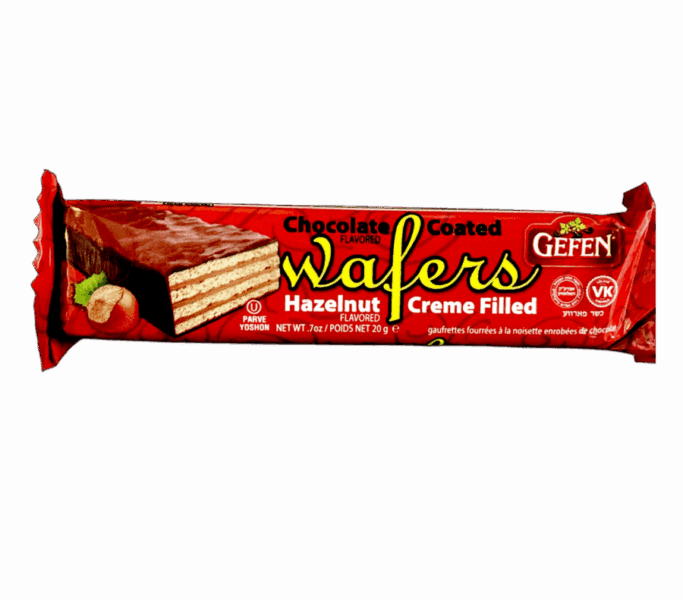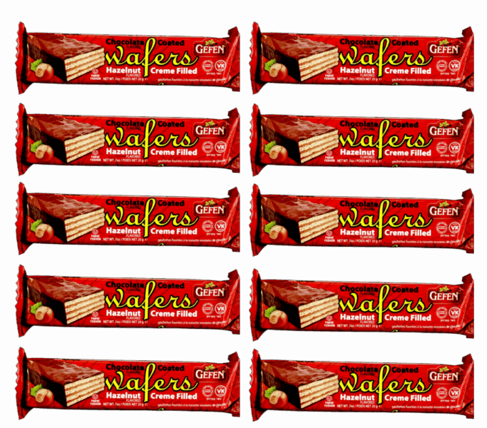 “10 barras de galleta con cubierta de chocolate y rellenas de crema de avellanas, 20g 1pz PARVE”