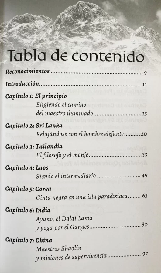Desde orfanatos en Sri Lanka hasta meditación silenciosa en Tailandia; desde ayunos en India hasta templos en el Himalaya; desde artes marciales extremas en Corea, China y Japón hasta las calles empedradas de Jerusalén…