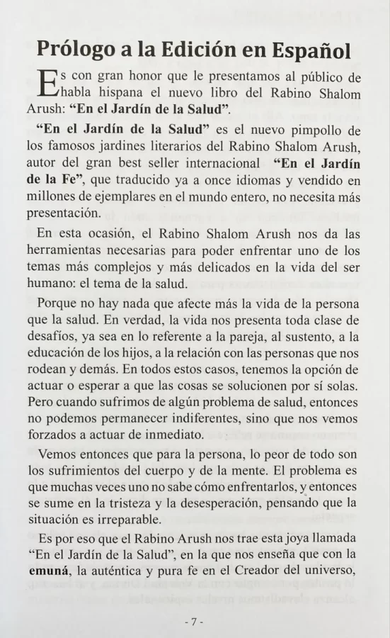 Porque cuando afirmamos que la curación proviene solamente del Creador y que se alcanza principalmente a través del arrepentimiento y de la plegaria, podemos cometer el error de pensar que entonces uno no tiene que tomarse la molestia de cuidar la salud, con la excusa de que “todo esta en manos del Creador”. Este libro contiene una guía terapéutica para la salud física y mental.