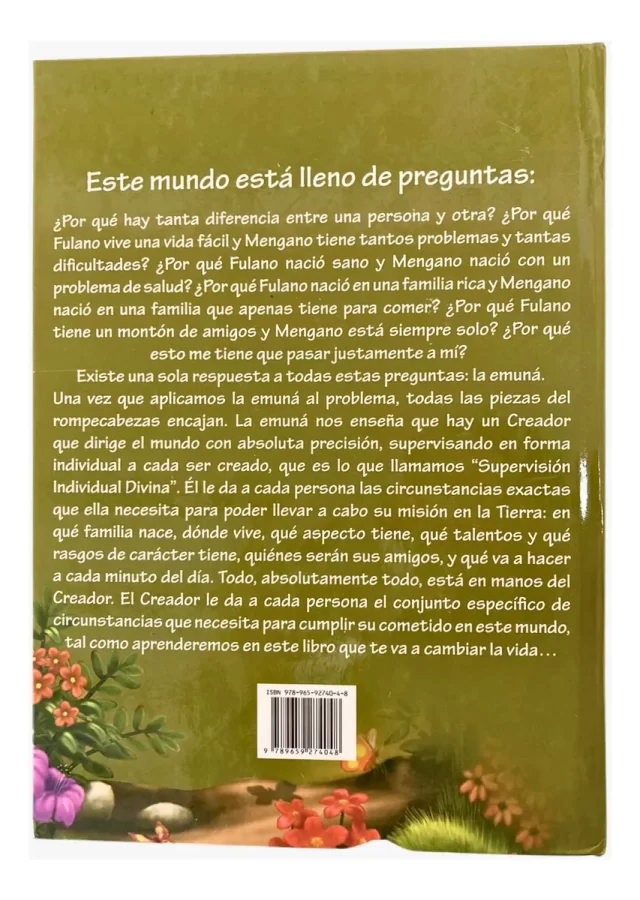 Una vez que aplicamos la emuná al problema, todas las piezas de rompecabezas encajan. La emuná nos enseña que hay un Creador que dirige el mundo con absoluta precisión, supervisando en forma individual a cada ser creado, que es lo que llamamos “Supervisión Individual Divina”. Él le da a cada persona las circunstancias exactas que ella necesita para poder llevar a cabo su misión en la Tierra: en qué familia nace, dónde vive, qué aspecto tiene, qué talentos y qué rasgos de carácter tiene, quiénes serán sus amigos, y qué va a hacer a cada minuto del día. Todo, absolutamente todo, está en manos del Creador. El Creador le da a cada persona el conjunto específico de circunstancias que necesita para cumplir su cometido en este mundo, tal como aprenderemos en este libro que te va a cambiar la vida…