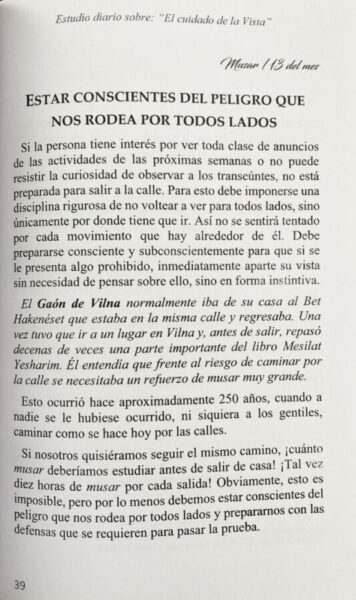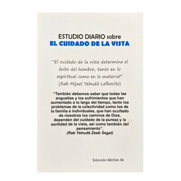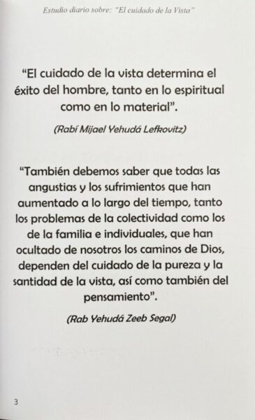 Con la ayuda de Boré Olam, hemos escrito y diseñado este libro sobre Halajot y Musar sobre el tema del Cuidado de la Vista, “Shemirat Einaim”, para que pueda estudiarse día a día y así, poder repasar y reforzarse en estos temas tan importantes cada mes.