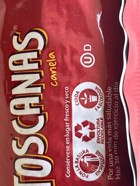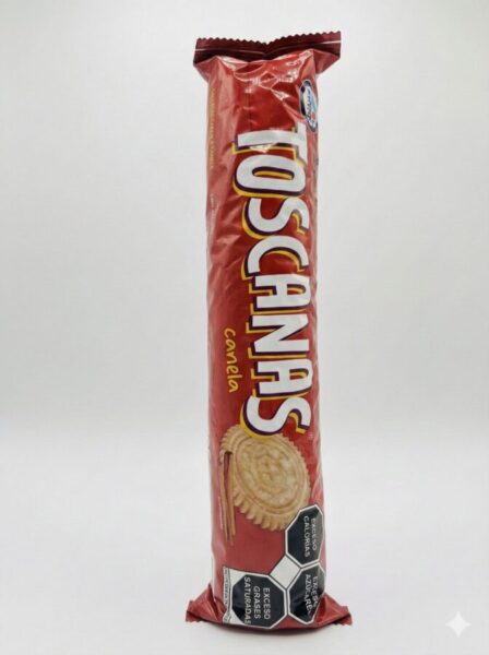 •Galletas dulces sabor canela en paquete de tubo (rollo) con 215g.