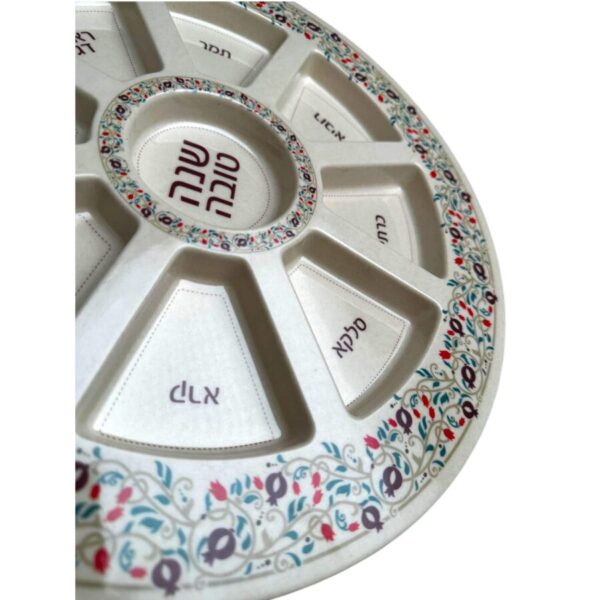 Keara: Es un platon tradicional judio especial para la mesa de Rosh hashana, esta asombrosa Keara esta hecha de Bambu, cuenta con distintos diseƱos combinables con su cuchillo y contiene espacios para cada elemento del seder de Rosh hashana.