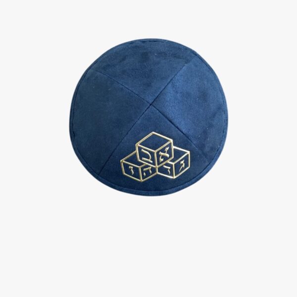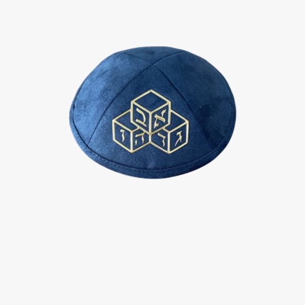 kipa de ultra gamuza de alta calidad azul con grabados de dados diseñada especialmente para hombres Cada kipa está elaborada con un material suave y lujoso que proporciona comodidad y un ajuste perfecto, ideal para cualquier ocasión, ya sea una Festividad, Shabat o un dia Jhol.