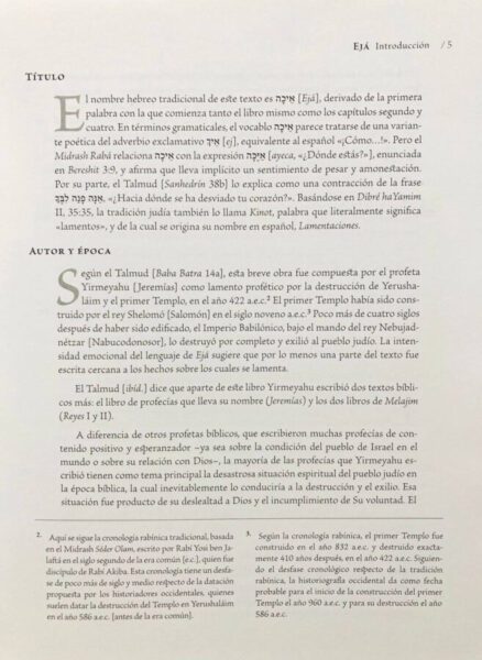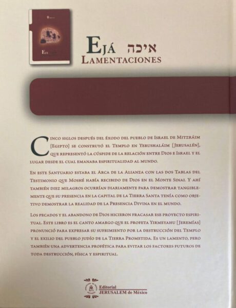 La Biblia explicada es una edición bilingüe del libro bíblico Ejá con fuentes históricas, tablas de estudio, introducción y explicaciones basadas en fuentes rabínicas.