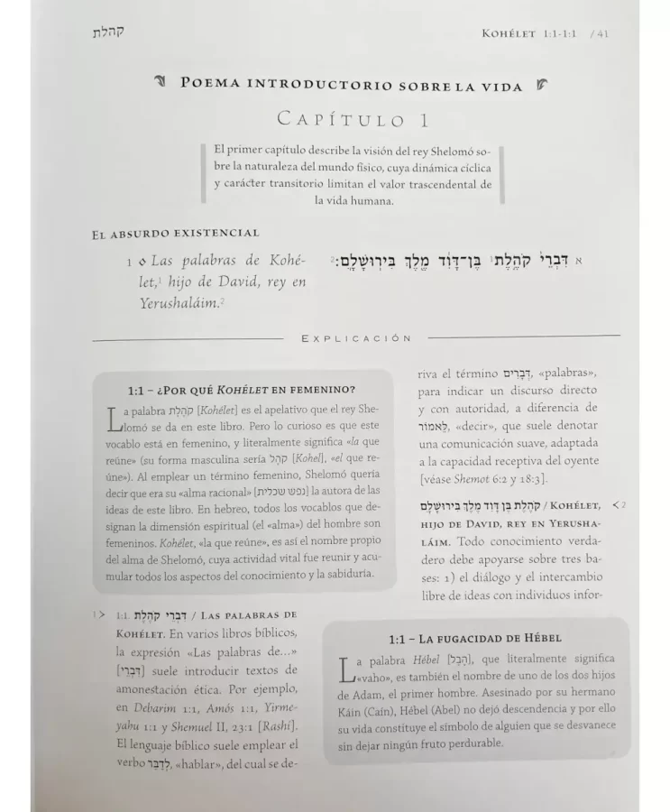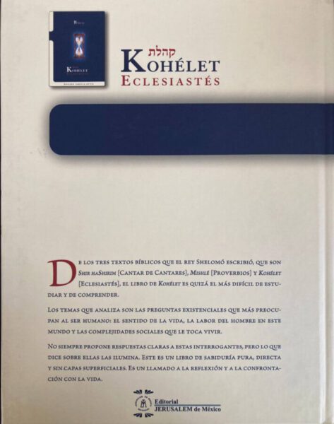 De los tres textos Bíblicos que el Rey Shlomo escribió: Cantar de los Cantares, Proverbios y Eclesiastés-Kohelet, quizás este último es el más difícil de estudiar y de comprender. Los temas que analiza son las preguntas existenciales que más preocupan al ser humano: El sentido de la vida, la labor del hombre en este mundo y las complejidades sociales que le toca vivir.