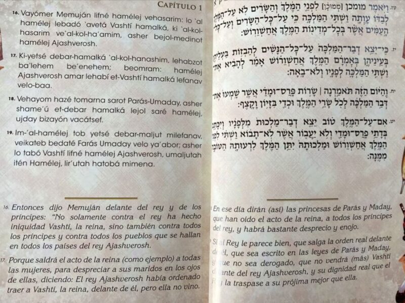 Libro de la meguilat esther hebreo,m fonetica y español con ilustraciones.