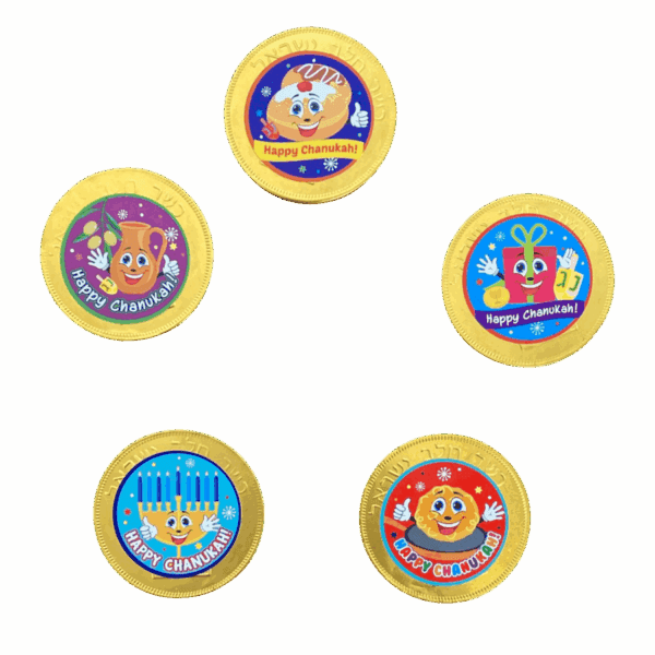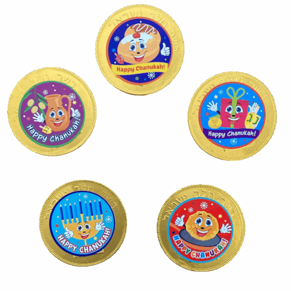 Pack de 5 monedas de chocolate Kosher.