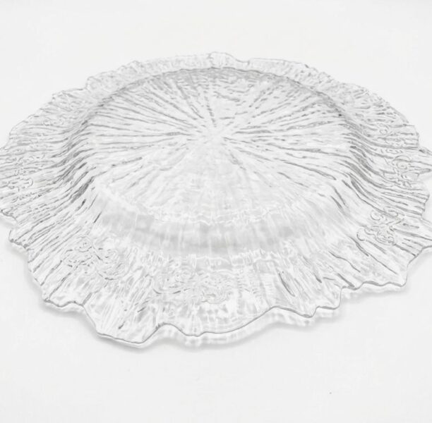 * Diseño Exclusivo: El plato presenta una textura de vidrio rugoso que imita formaciones orgánicas o destellos de agua, creando un efecto visual dinámico y moderno.