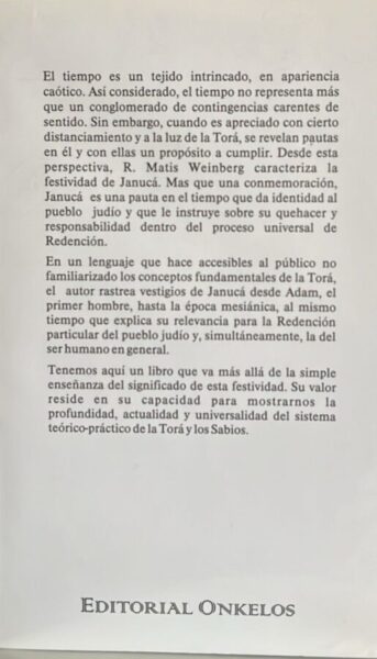 Januca es una pauta en el tiempo que da identidad al pueblo judio y que le instruye sobre su responsabilidad dentro del proceso universal de Redencion. El valor de este libro reside en su capacidad de mostrarnos la profundidad, actualidad y universalidad del sistema teorico-practico de la Torah y los Sabios.