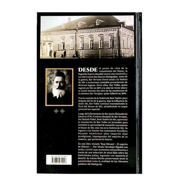 – Este libro es una recopilación de Sijot Musar (charlas de ética) dadas por el ilustre Mashguiaj Rav Shlomo Volbe Zatzal en la Yeshivá de Mir en Jerusalén durante los años 5749-5756.