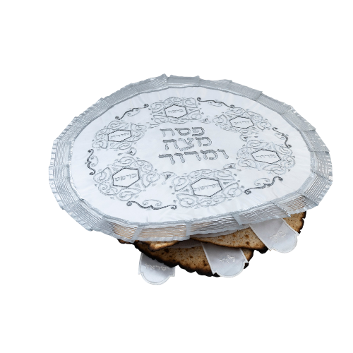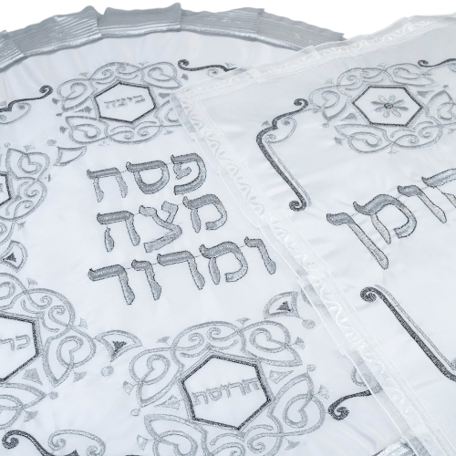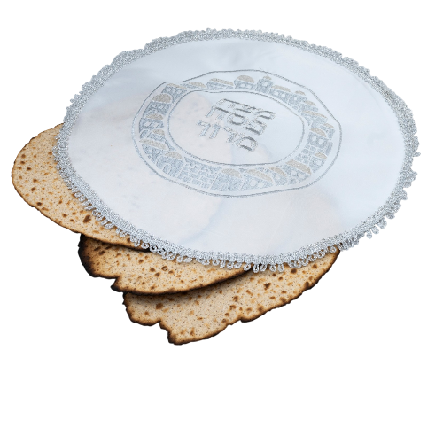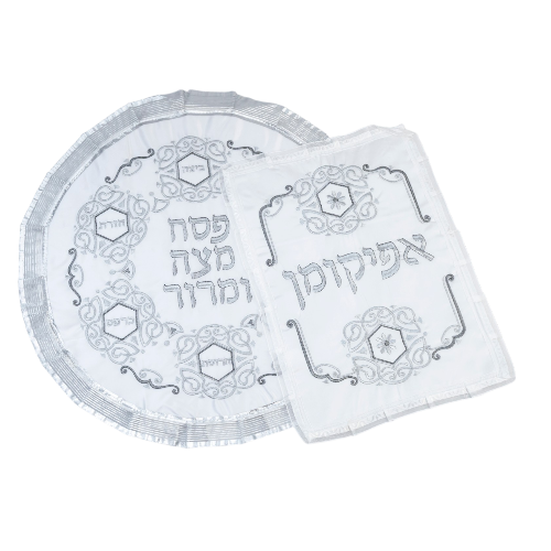 Bolsa de Afikomán: Una bolsa de satén a juego, a menudo con cremallera (aprox. 26 cm de largo x 22 cm), contiene la mitad más grande de la matzá central (el Afikomán) después de que se parte durante la etapa de Yajatz del Séder.