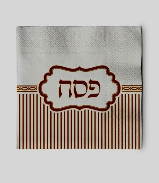 Nuestra servilleta de Pesaj incluye ‘בסד’ en el centro, recordándonos la divina providencia en nuestra mesa de Seder”.