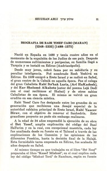 • El Shulján Aruj, famoso compendio de las leyes más corrientes del judaísmo conforme a la halajá judía, ahora al alcance de todos, en forma clara, simple, con aclaraciones de los comentaristas.