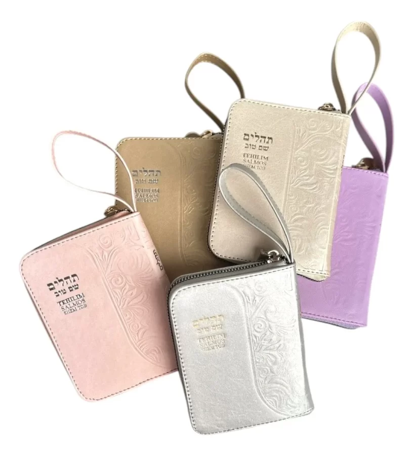 Salmos de bolsillo pasta dura con cierre, editorial Shem Tob. Edición en hebreo, fonética y español interlineal.