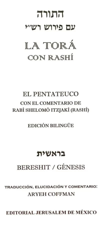 La Torá con Rashí: Bamidbar (Números) es una edición bilingüe que presenta el texto hebreo original del cuarto libro del Pentateuco, junto con su traducción al español. Incluye el Targum de Onkelos en arameo y el comentario de Rashí en hebreo, también traducido al español. Esta obra fue traducida por el Rabino Aryeh Coffman y está diseñada para facilitar el estudio y comprensión del texto sagrado.