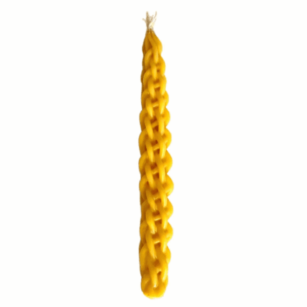 Esta vela de Havdalá en color amarillo está diseñada para iluminar el momento especial que marca la conclusión del Shabat. Con su forma trenzada tradicional, simboliza la unión entre lo sagrado y lo cotidiano, creando una atmósfera cálida y espiritual.