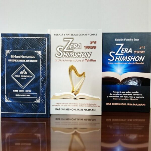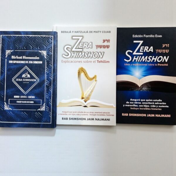 Set de libros Zera Shimshon son una serie de comentarios profundos sobre la Torá y las cinco Meguilot, escritos por el Rabino Shimshón Jaím Najmani. Son reconocidos por la promesa del autor de bendecir con hijos, salud, sustento y éxito a quienes estudien sus escritos, buscando atraer protección y bienestar a través del aprendizaje de sus palabras.